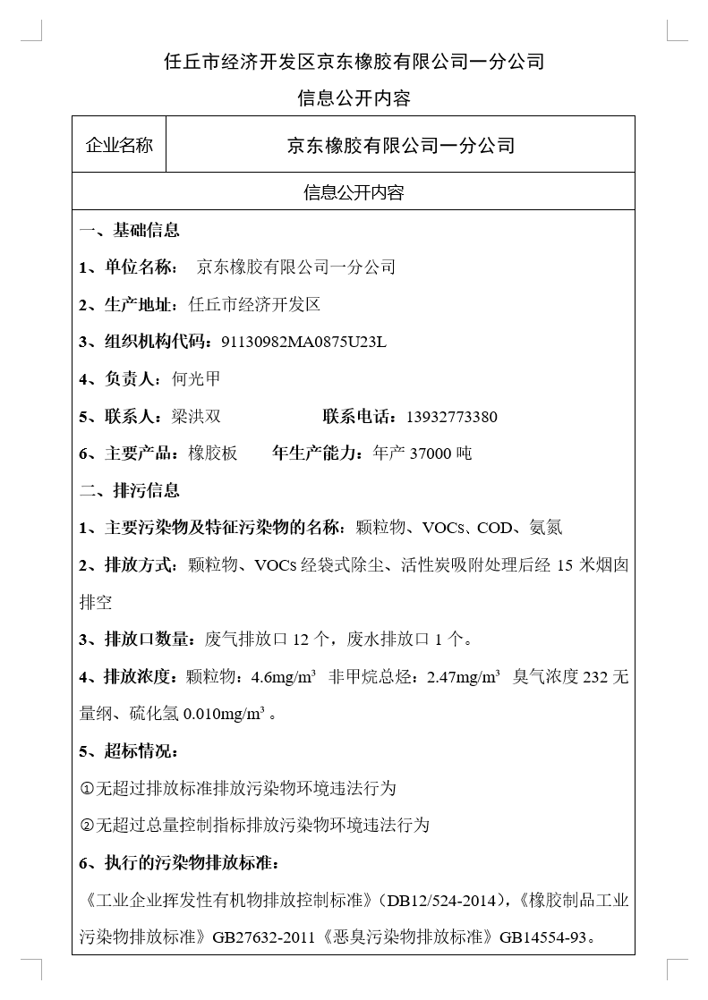 任丘市經(jīng)濟開發(fā)區(qū)京東橡膠有限公司一分公司信息公開內(nèi)容